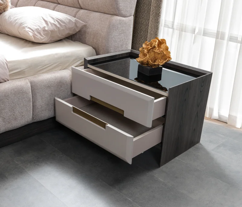Naktsskapītis 2.gb LAGUN naktsskapītis 2.gb lagun izmēri: 68x44x49 cm krāsa: bēša, pelēka, melna materiāls: mdf, stikls durvīm ir klusa aizvēršanas sistēma. mēbeles pārdodas saliktā veidā (būs daļēji izjaukta transportēšanai). izmēri: 68 x 44 x 49 cm. augstums: 49 cm; garums: 44 cm; garums: 68 см;.