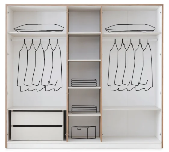 Skapis PANDORA 5D skapis pandora 5d izmērs: platums 243 cm; augstums 218 cm; dziļums 60 cm. krāsa: balta materiāls: laminēta skaidu plāksne ražots: turcijā ! saite uz instrukciju ir šifrēta qr kodā, kas ir pielīmēts uz iepakojuma. viedtālruņa kamera ir jānovieto pie atzīmes, un tā automātiski nolasa attēlu. izmēri: 243 x 60 x 218 cm. augstums: 218 cm; garums: 60 cm; garums: 243 см;.
