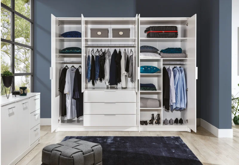 Piecdurvju un sešdurvju skapji ir vēl ietilpīgāki mēbeļu izstrādājumi lietu glabāšanai un kārtošanai nekā skapji ar mazākām durvīm. Tie nodrošina vēl vairāk vietas drēbju, apavu, veļas, trauku, grāmatu un citu priekšmetu glabāšanai, un tos var izmantot dažādās telpās. Šiem skapjiem parasti ir arī dažādas iekšējās telpas konfigurācijas, tostarp plaukti, pakaramie, atvilktnes un papildu nodalījumi, lai atvieglotu satura organizēšanu un uzglabāšanu. Daudzām durvīm var būt arī spoguļdurvis, padarot tās funkcionālas lietošanai kā skapi guļamistabā. Piecdurvju un sešdurvju skapju materiālus un stilus var variēt, lai tie atbilstu jūsu interjera dizainam. Tie var būt izgatavoti no koka, skaidu plātnes, metāla, stikla un citiem materiāliem, un tie ir pieejami dažādos stilos, sākot no klasiskā līdz modernam minimālismam. Šos skapjus parasti izmanto lielās guļamistabās vai citās telpās, kur nepieciešams daudz vietas uzglabāšanai. Tie var kalpot kā drēbju skapji, kā arī dažādu lietu uzglabāšanas vietas atkarībā no īpašnieka vajadzībām un vēlmēm. Skapji ar vairākām durvīm nodrošina maksimālu uzglabāšanas ietilpību, taču arī uzstādīšanai ir nepieciešams vairāk vietas.