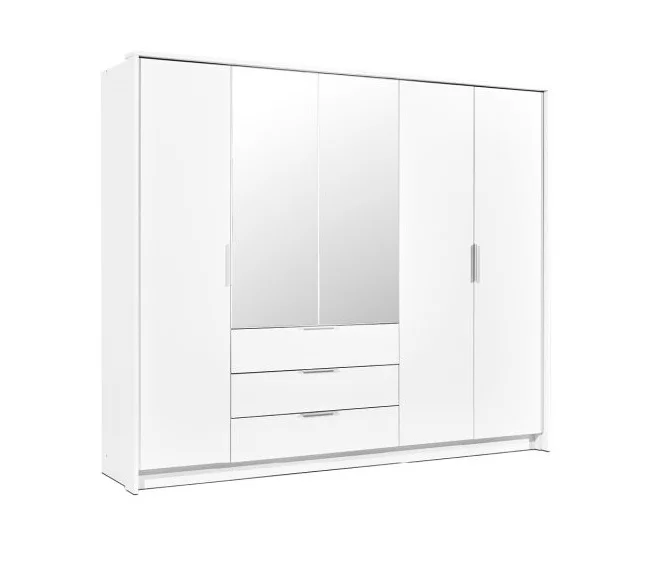 Preces apraksts: Ietilpīgs 5 durvju skapis. Izmēri: Platums: 255 cm Dziļums: 65 cm Augstums: 217 cm Ipašības: -Krāsa: balta -Materiāls: MDF/LSP -Matēta virsma -Komplektā: 3 stangas, 3 atvilktnes Ražots Polijā Izmēri: 255 x 65 x 217 cm. Augstums: 217 cm; Garums: 65 cm; Garums: 255 см;...