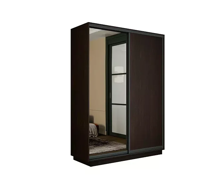 Шкаф-купе 2х-дверный с зеркалом 150/240/60 cm, венге+2 ящика, профиль черный